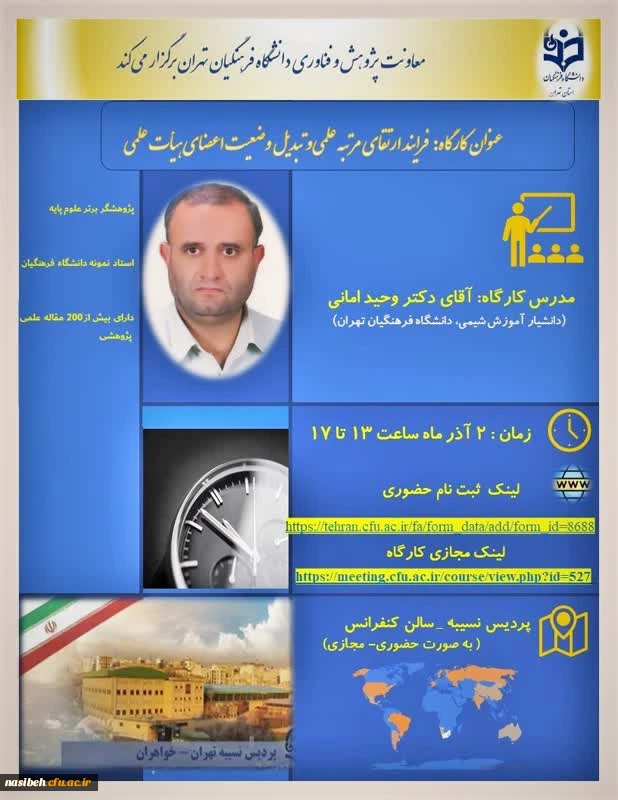 لینک مجازی کارگاه: https://meeting.cfu.ac.ir/course/view.php?id=527