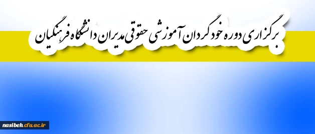 قابل توجه اعضای هیأت علمی و غیر هیأت علمی برگزاری دوره خود گردان آموزشی حقوقی مدیران دانشگاه فرهنگیان 2