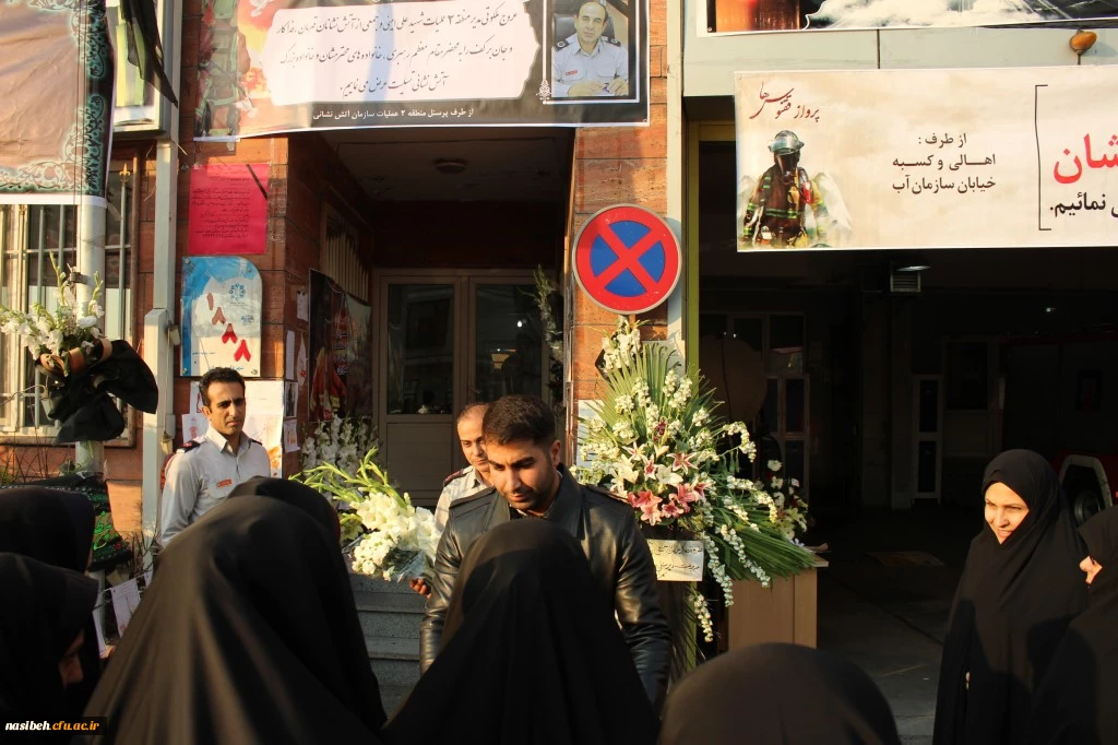 حضور مسئولین و جمعی از دانشجویان پردیس نسیبه در پی حادثه پلاسکو و ابراز همدری با ایستگاه 77آتش نشانی شهید خورشید فر 3