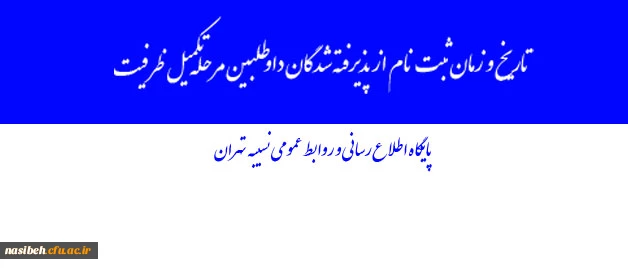 پایگاه اطلاع رسانی و روابط عمومی نسیبه تهران: تاریخ و زمان ثبت نام از پذیرفته شدگان داوطلبین مرحله تکمیل ظرفیت 2