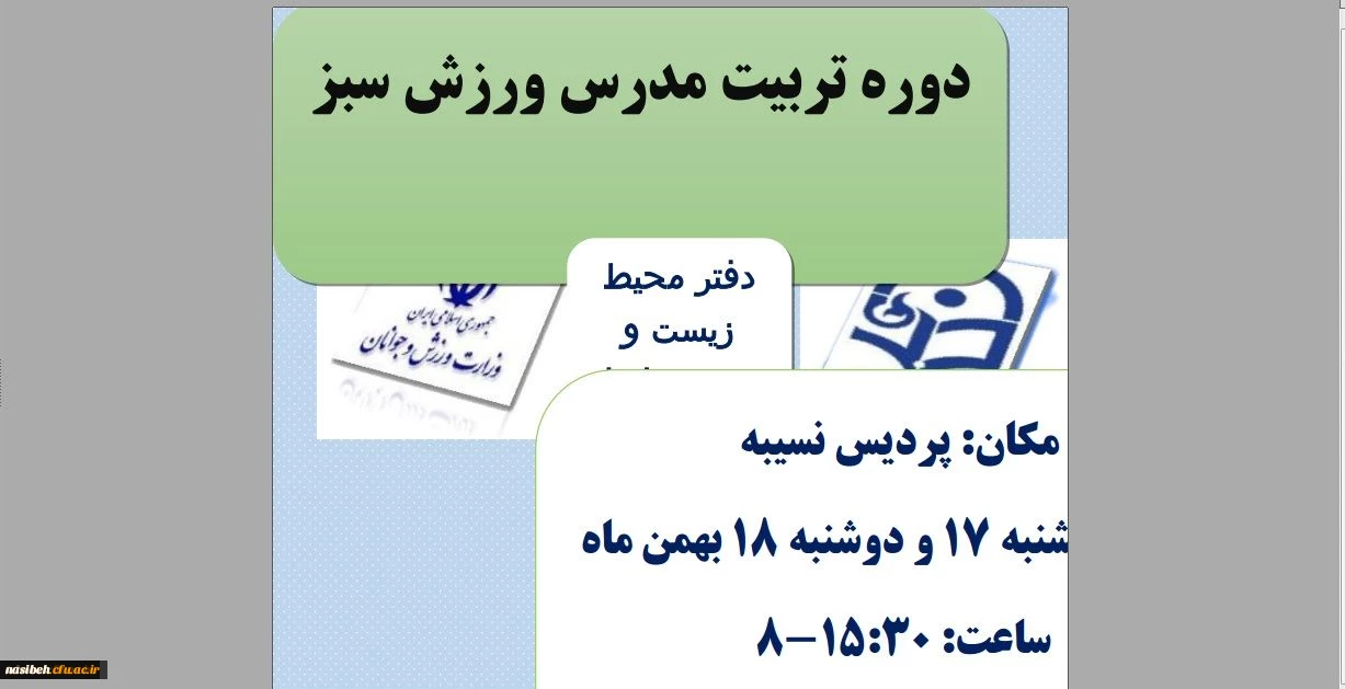 قابل توجه همکاران متقاضی شرکت در این دوره: برگزاری دوره آموزشی مدرس ورزش سبز در پردیس نسیبه 2