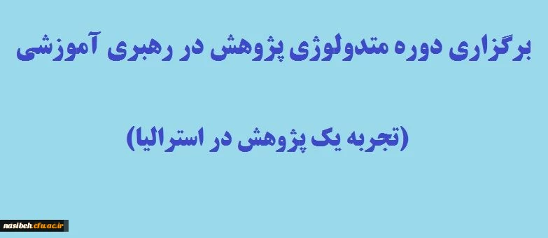 امتیاز دهید : برگزاری دوره متدولوژی پژوهش در رهبری آموزشی (تجربه یک پژوهش در استرالیا) 2 چهارشنبه 13 بهمن 1395 ساعت 10:54