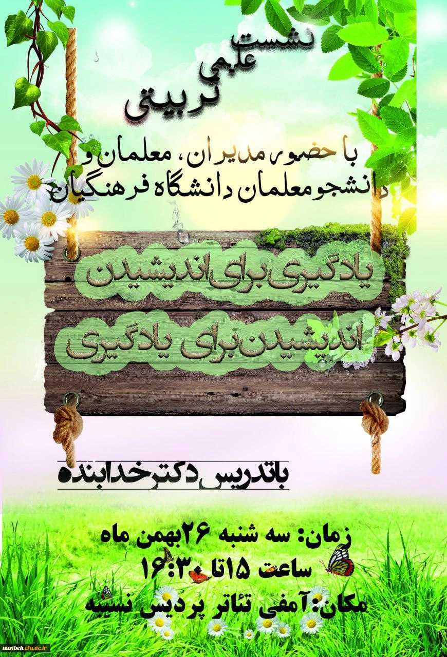 امتیاز دهید : برگزاری نشست علمی تربیتی: یاد گیری برای اندیشیدن و اندیشیدن برای یادگیری 2 شنبه 16 بهمن 1395 ساعت 23:04