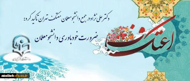 امتیاز دهید : دکتر علی نژاد در جمع دانشجومعلمان معتکف تهران تاکید کرد: ضرورت خودباوری دانشجومعلمان 2 یکشنبه 27 فروردین 1396 ساعت 0:23