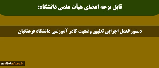 قابل توجه اعضای هیأت علمی دانشگاه: دستورالعمل اجرایی تطبیق وضعیت کادر آموزشی دانشگاه فرهنگیان 2