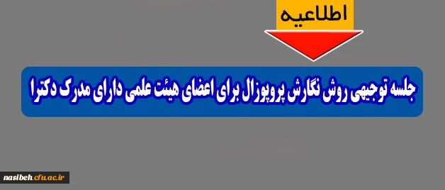 امتیاز دهید : جلسه توجیهی روش نگارش پروپوزال برای اعضای هیئت علمی دارای مدرک دکترا 2 دوشنبه 8 خرداد 1396 ساعت 2:50