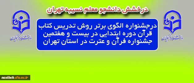 نومعلم مستعد سرکار خانم فائزه محمد اسماعیلی مقام اول جشنواره الگوی برتر روش تدریس کتاب قرآن دوره ابتدایی در بیست و هفتمین جشنواره فرآن و عترت در استان تهران را به خود اختصاص داد. 2