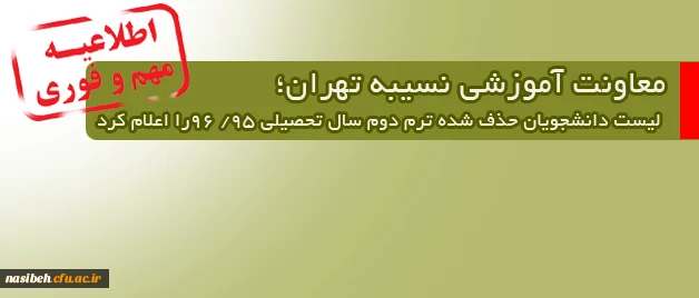 امتیاز دهید : معاونت آموزشی نسیبه تهران لیست دانشجویان حذف شده ترم دوم سال تحصیلی 95/ 96را اعلام کرد 3 دوشنبه 5 تیر 1396 ساعت 20:09