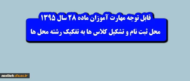 اطلاعیه شماره 1 مهارت آموزان ماده 28 سال 1395: محل ثبت نام و تشکیل کلاس ها به تفکیک رشته محل ها 2