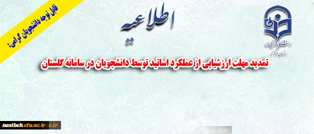 قابل توجه دانشجویان گرامی: تمدید مهلت ارزشیابی از عملکرد اساتید توسط دانشجویان در سامانه گلستان 2