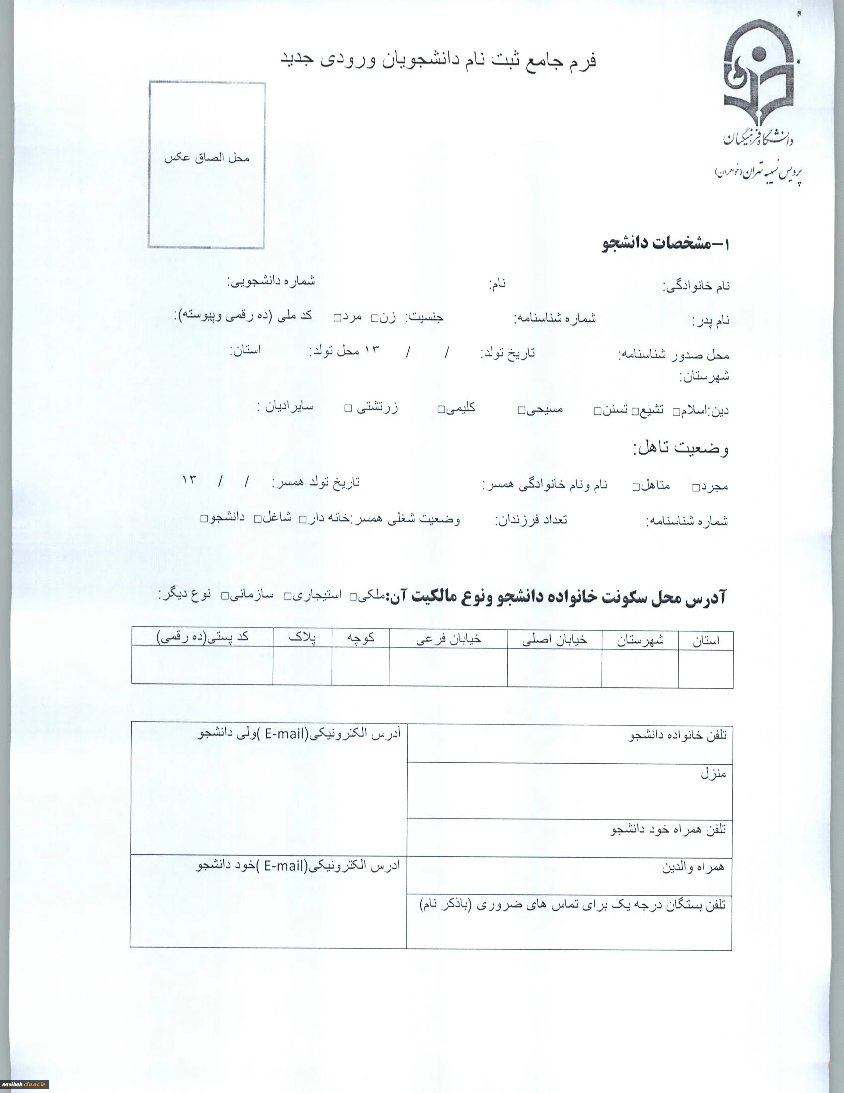 فرم های مربوط به دانشجویان