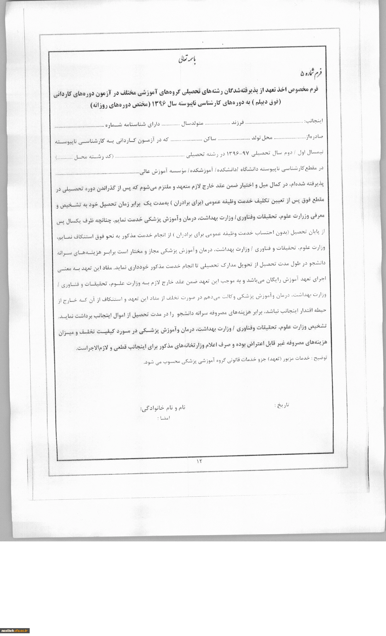 فرم تعهد محضری