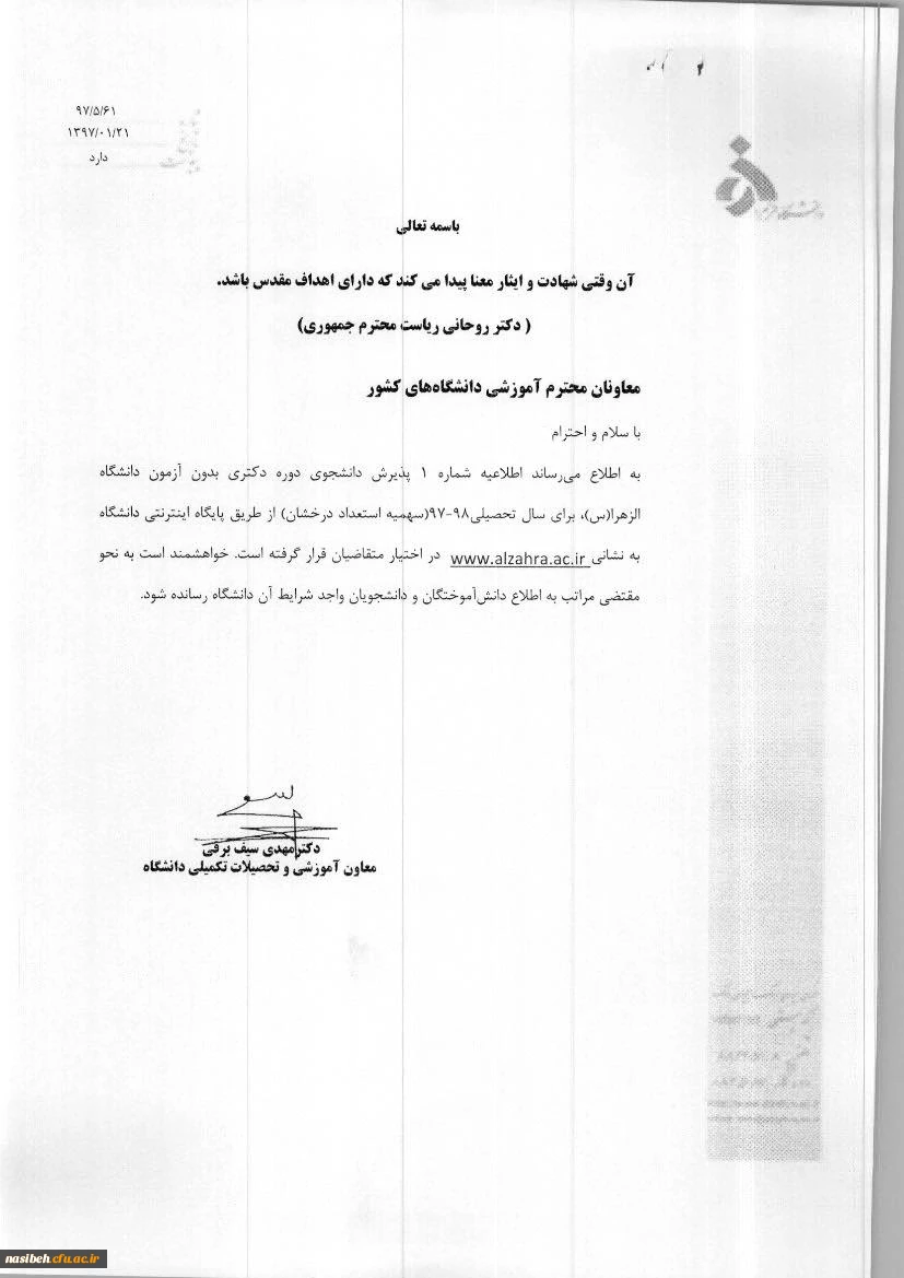 «فراخوان پذیرش بدون آزمون دوره دکتری دانشگاه الزهراء (س)»  2