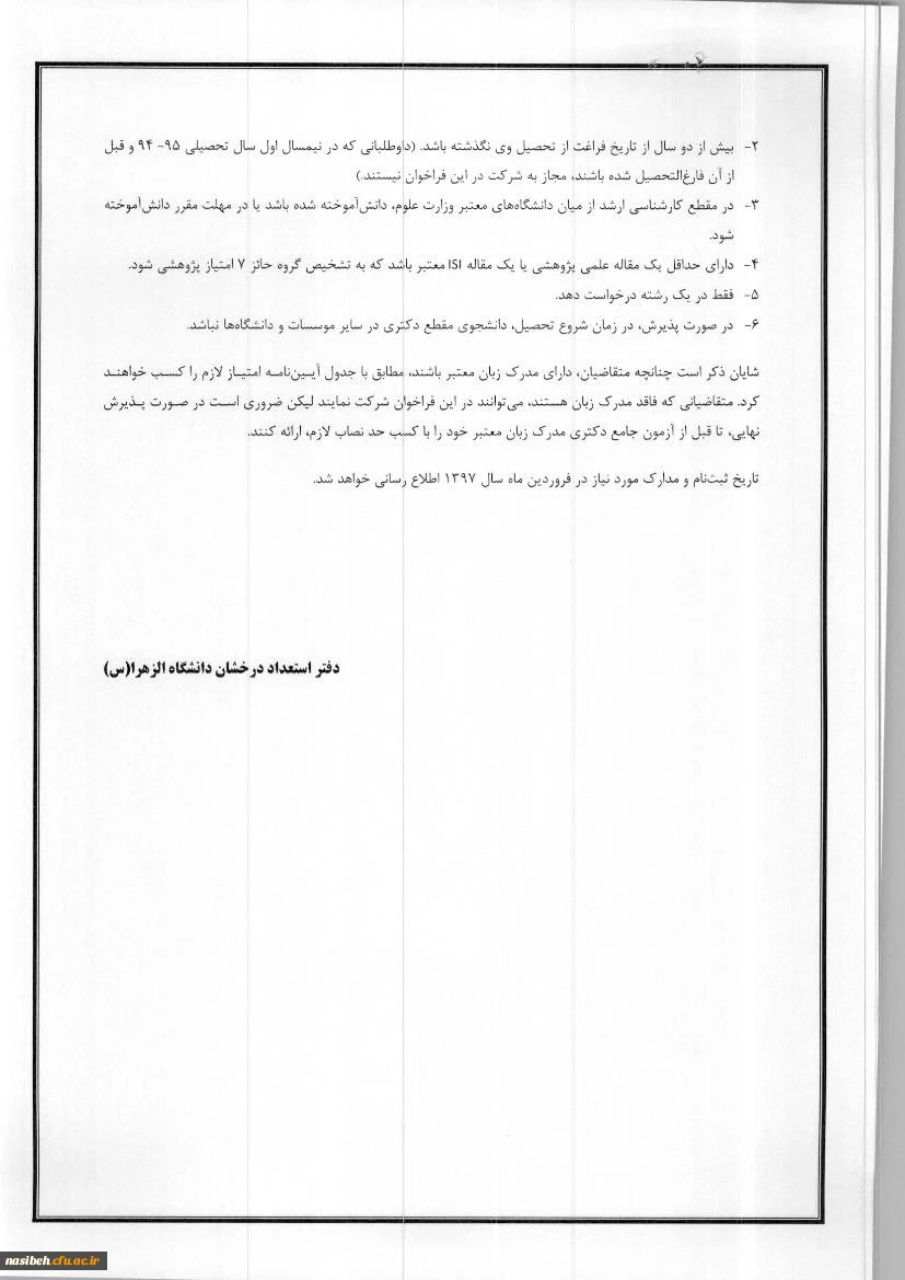 «فراخوان پذیرش بدون آزمون دوره دکتری دانشگاه الزهراء (س)»  2