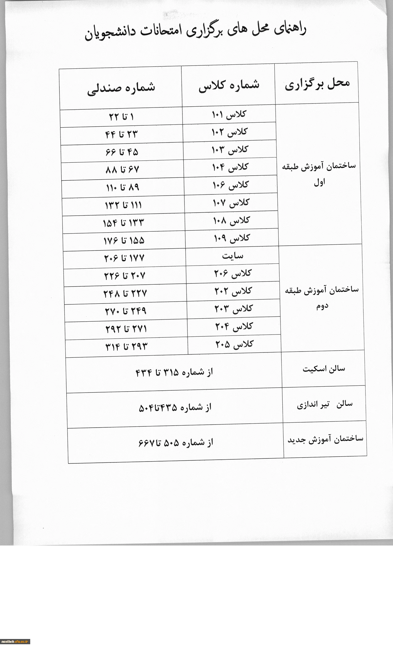 راهنمای محل برگزاری امتحانات دانشجویان 2