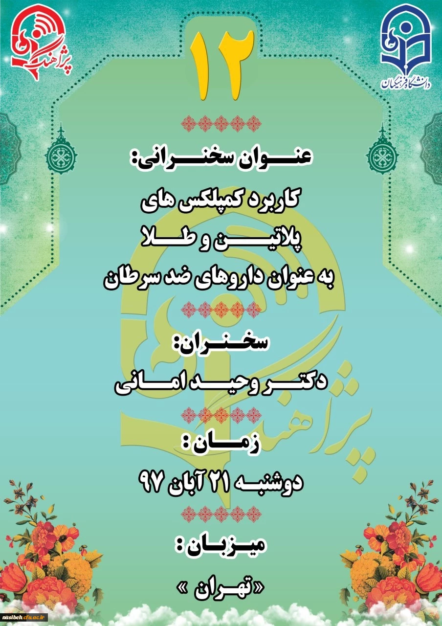 امتیاز دهید : پژآهنگ دوازدهم: کاربرد کمپلکس های پلاتین و طلا به عنوان داروهای ضد سرطان 2 یکشنبه 20 آبان 1397 ساعت 15:18