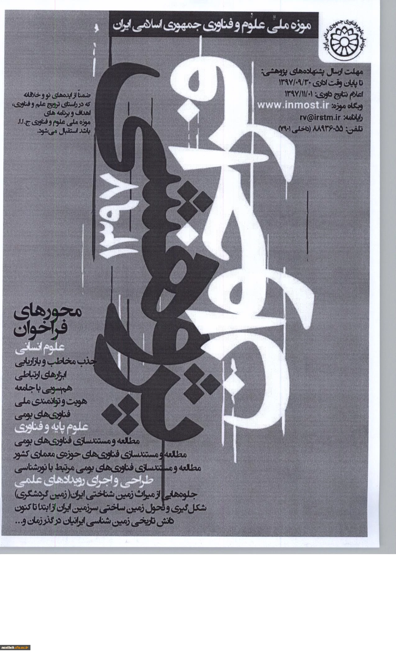 امتیاز دهید : فراخوان پژوهشی سال 1397 موزه ملی علوم و فناوری جمهوری اسلامی ایران 3 چهارشنبه 21 آذر 1397 ساعت 9:50