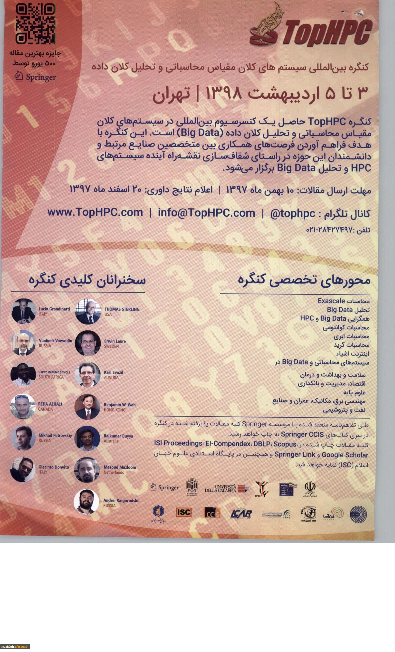 امتیاز دهید : فراخوان " کنگره بین المللی سیستم های کلان داده وکلان مقیاس محاسباتی " 3 یکشنبه 7 بهمن 1397 ساعت 9:38