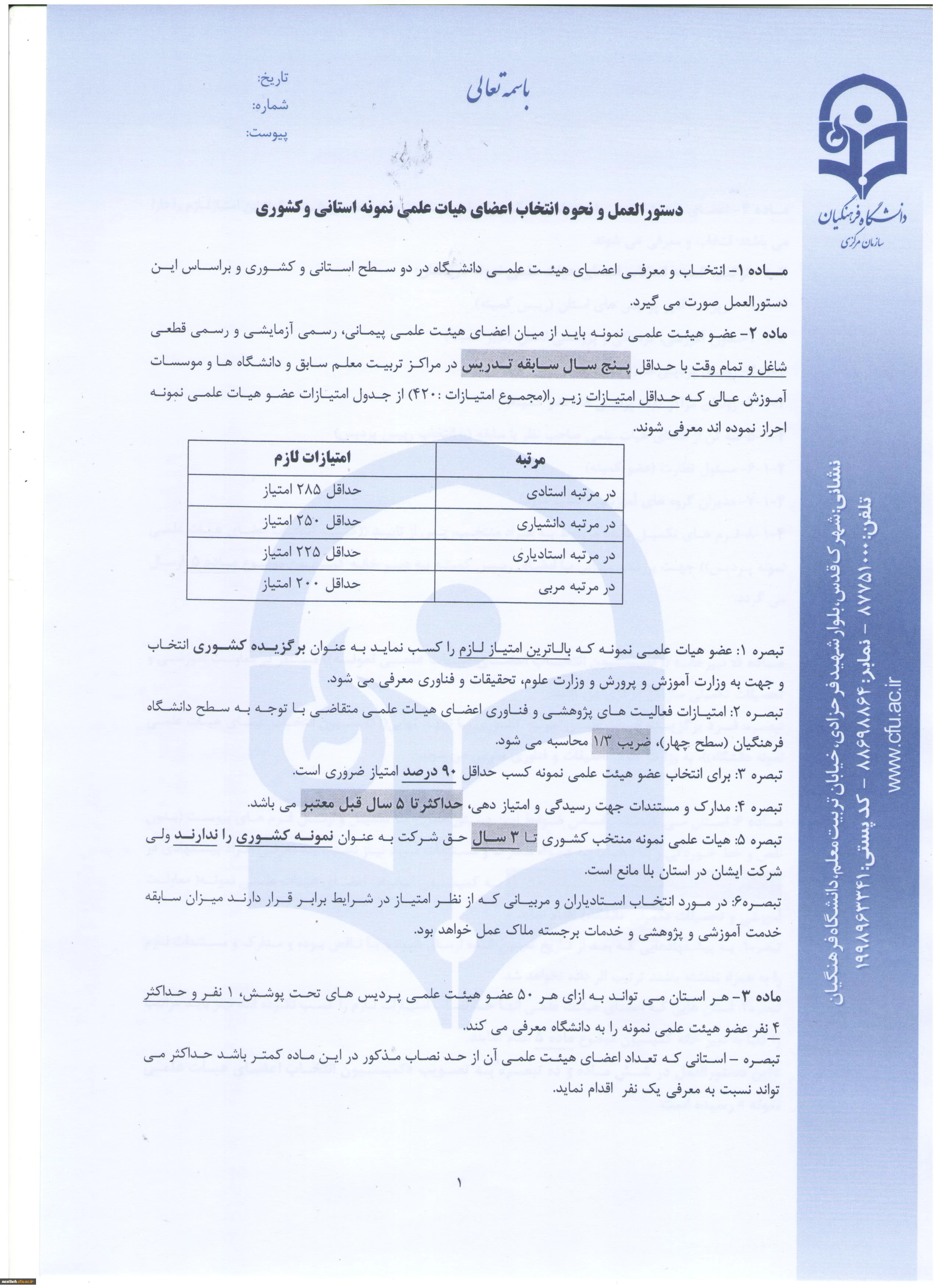 کاربرگ ترفیع سالیانه اعضای هیئت علمی دانشگاه فرهنگیان