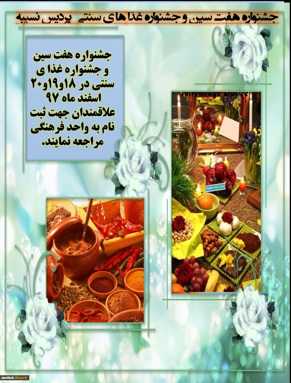امتیاز دهید : برگزاری جشنواره هفت سین وجشنواره غذاهای سنتی درپردیس نسیبه 2 یکشنبه 5 اسفند 1397 ساعت 11:36