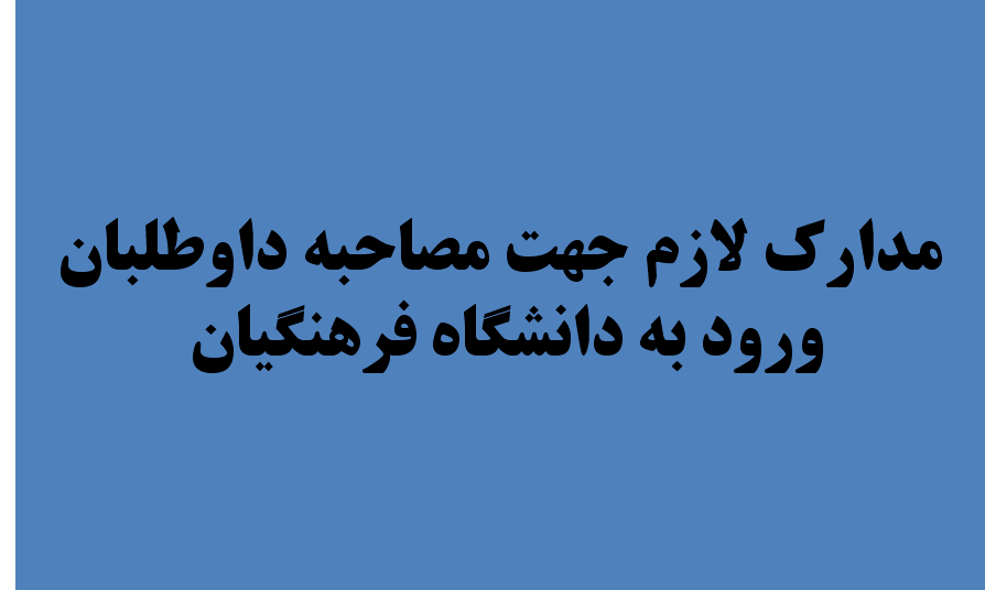 امتیاز دهید : مدارک لازم جهت مصاحبه داوطلبان ورود به دانشگاه فرهنگیان پنجشنبه 30 مرداد 1393 ساعت 9:26