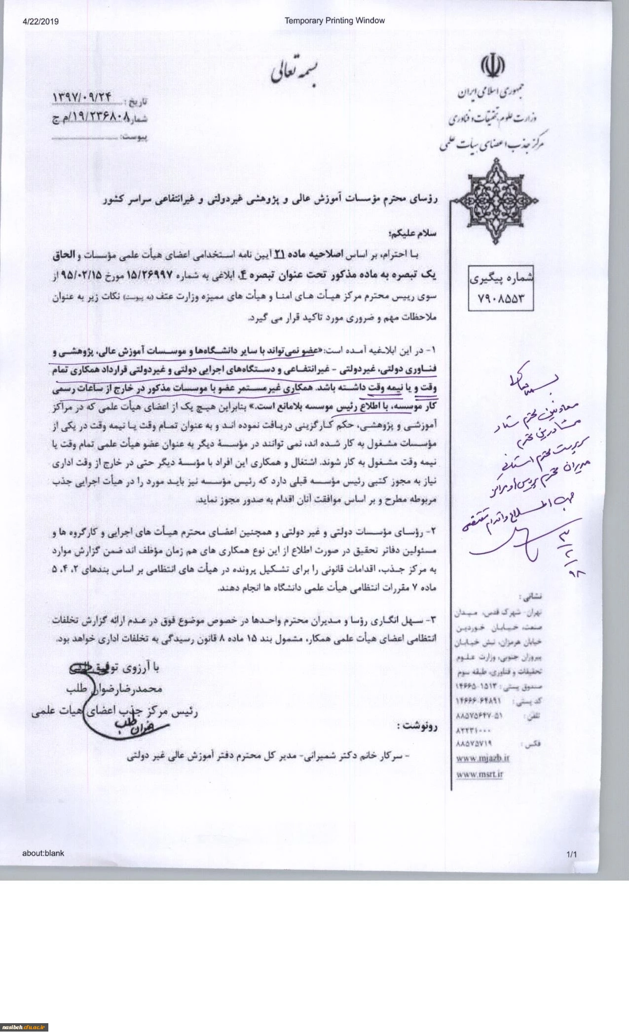 امتیاز دهید : نحوه همکاری اعضای هیات علمی با سایر موسسات دولتی و غیر دولتی 2 شنبه 7 اردیبهشت 1398 ساعت 8:11