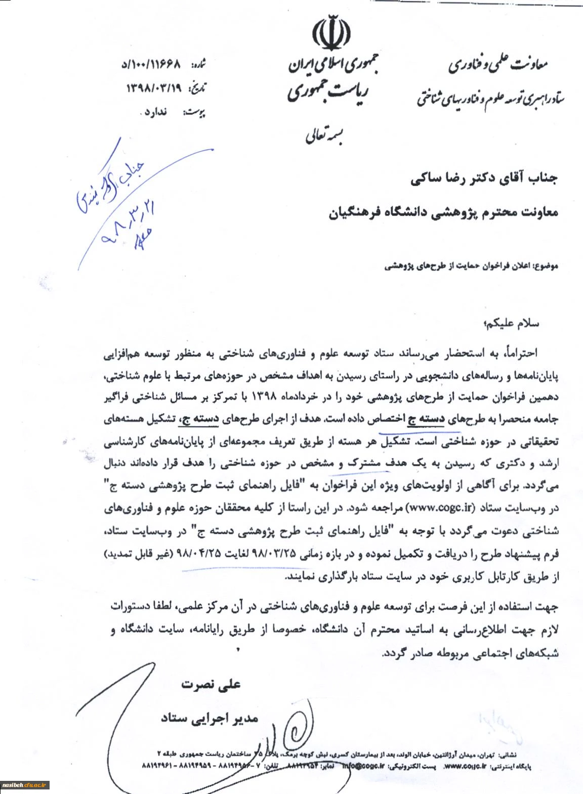 امتیاز دهید : فراخوان حمایت از طرح های پژوهشی ستاد راهبری توسعه علوم و فناوری های شناختی 2 دوشنبه 17 تیر 1398 ساعت 9:21