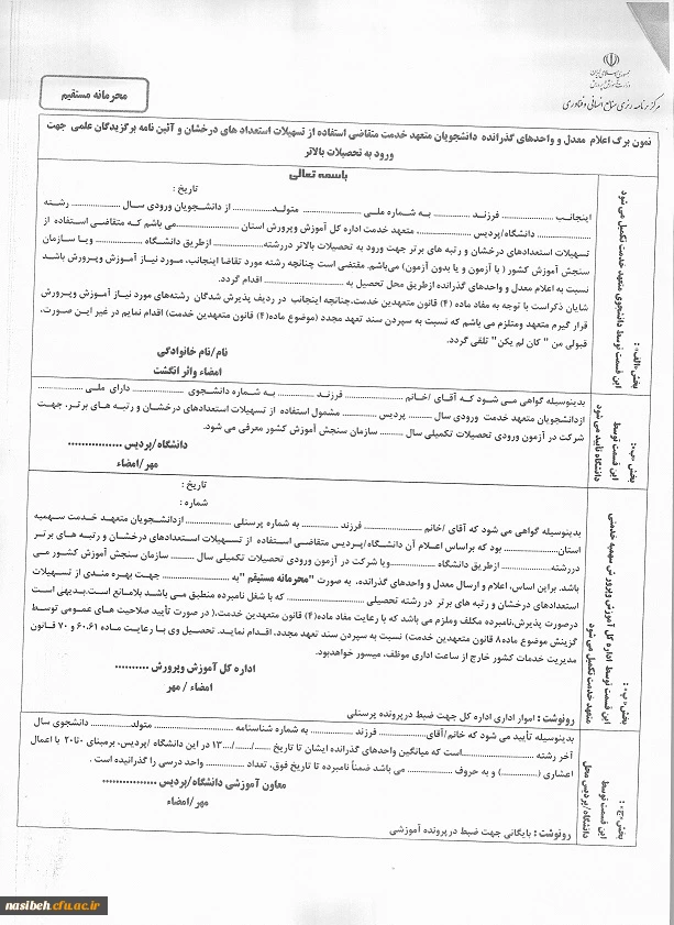 امتیاز دهید : نمون برگ اعلام معدل وواحدهای گذرانده دانشجویان متعهد خدمت 2 سهشنبه 25 تیر 1398 ساعت 14:38