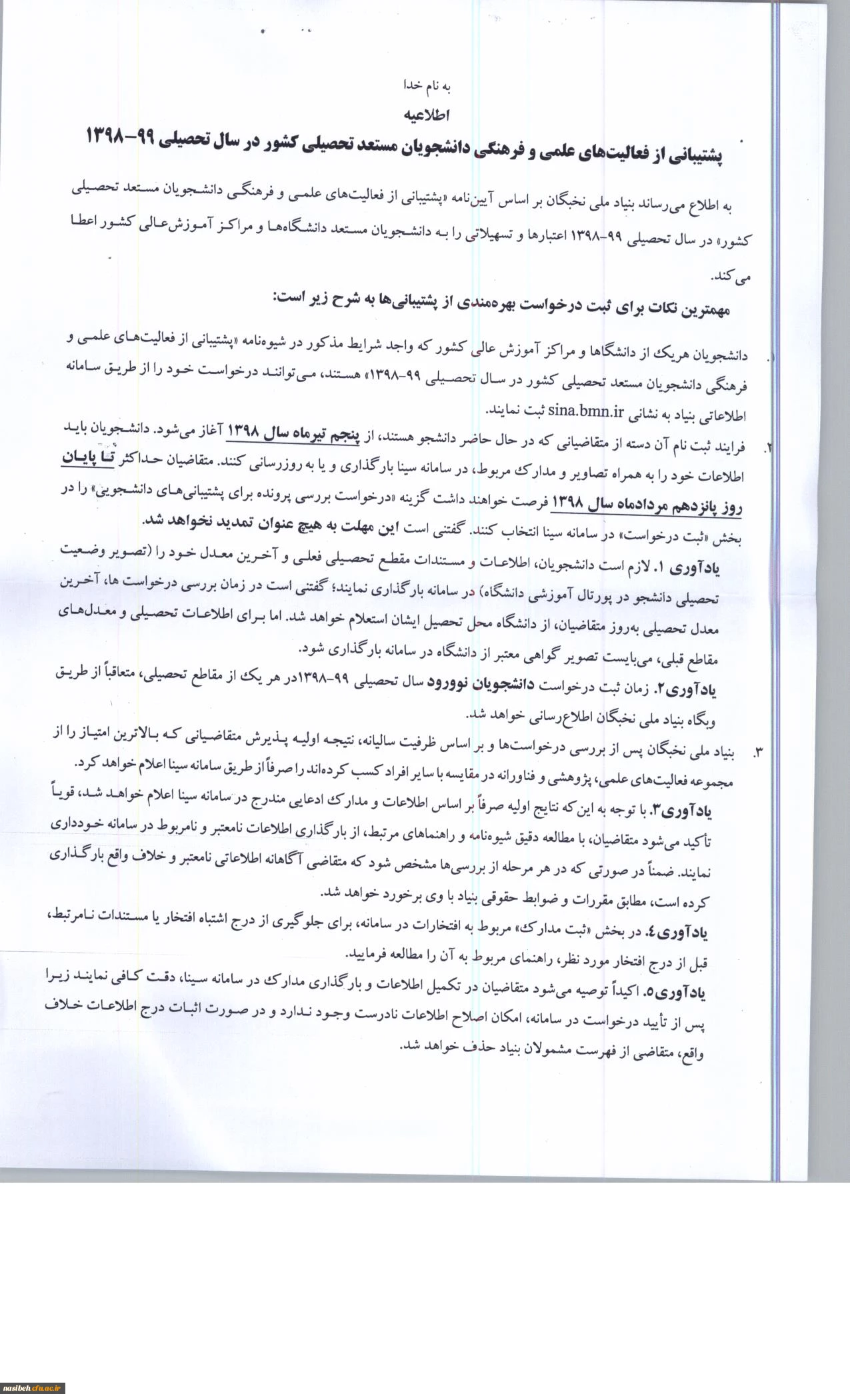 امتیاز دهید : فراخوان ثبت نام برای بهره مندی از تسهیلات دانشجویی بنیاد ملی نخبگان 3 دوشنبه 7 مرداد 1398 ساعت 15:11