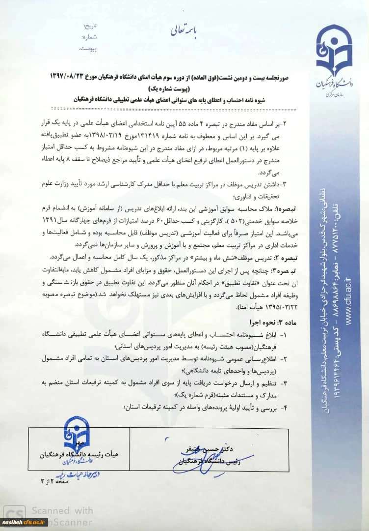 امتیاز دهید : شیوه نامه احتساب و اعطای پایه های سنواتی اعضای هیئت علمی تطبیقی دانشگاه فرهنگیان 5 چهارشنبه 24 مهر 1398 ساعت 8:57