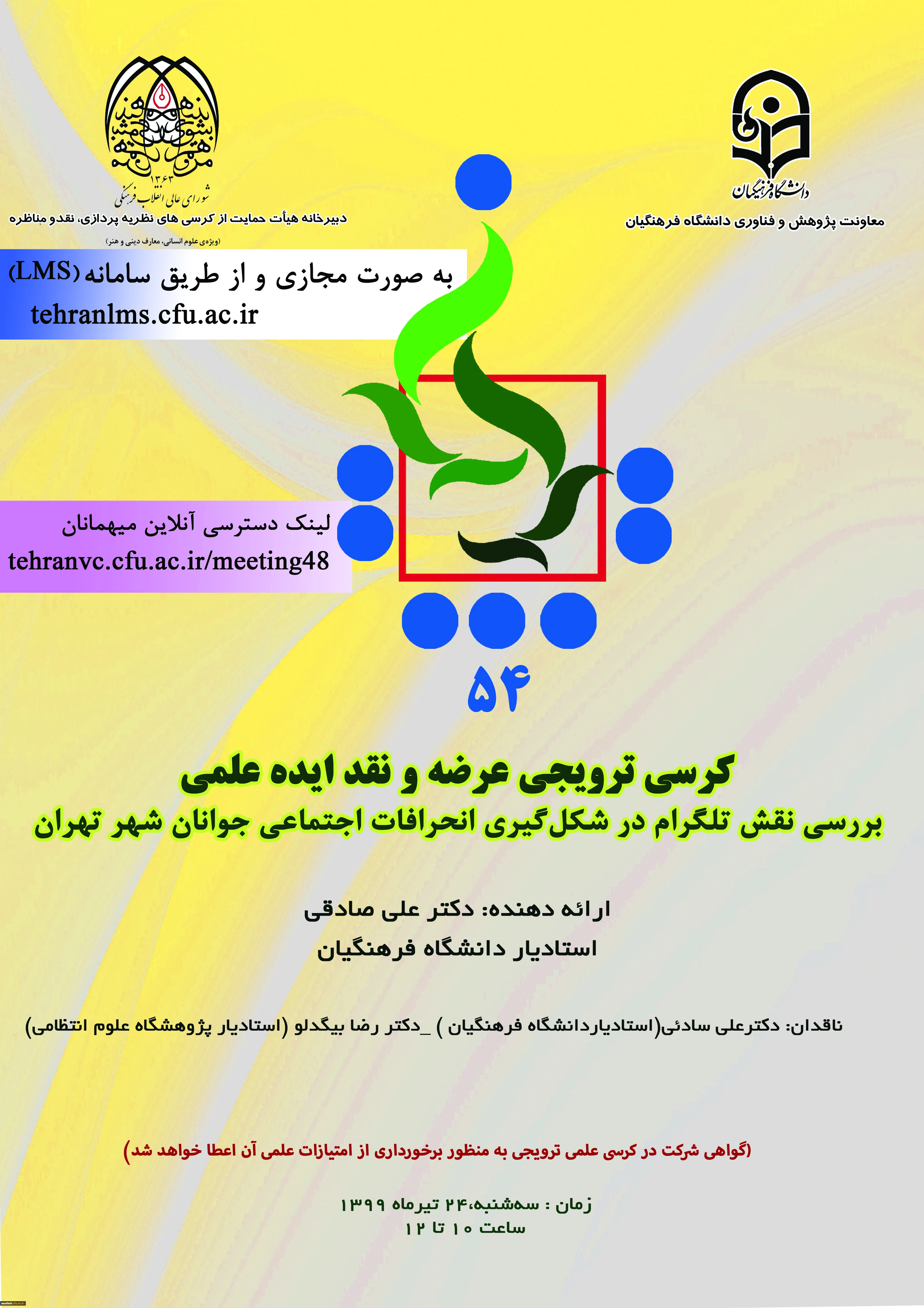 پنجاه و چهارمین کرسی ترویجی عرضه و نقد ایده علمی با عنوان «بررسی نقش تلگرام در شکلگیری انحرافات اجتماعی جوانان شهر تهران» 2