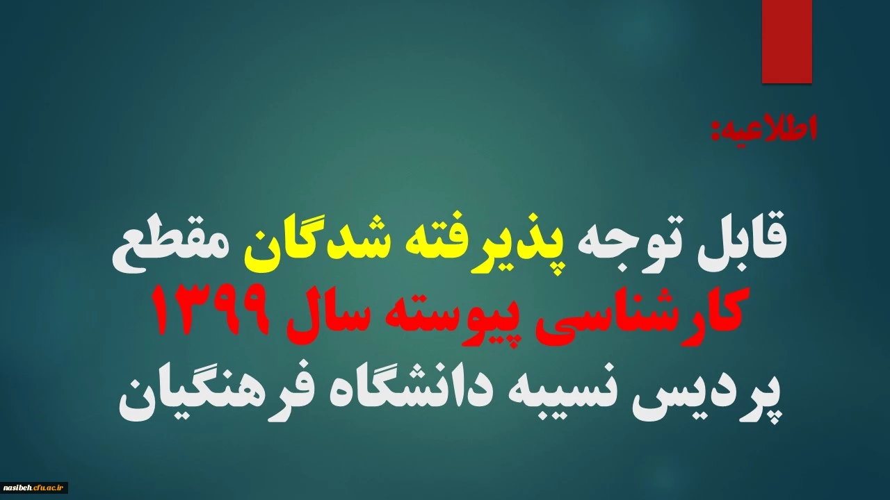 امتیاز دهید : قابل توجه پذیرفته شدگان مقطع کارشناسی پیوسته سال 1399 پردیس نسیبه دانشگاه فرهنگیان چهارشنبه 14 آبان 1399 ساعت 17:06