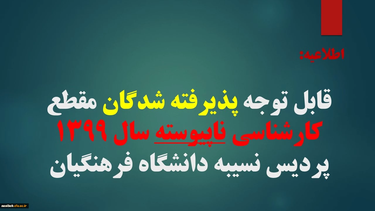امتیاز دهید : قابل توجه پذیرفته شدگان مقطع کارشناسی ناپیوسته سال 1399 پردیس نسیبه دانشگاه فرهنگیان چهارشنبه 14 آبان 1399 ساعت 20:06