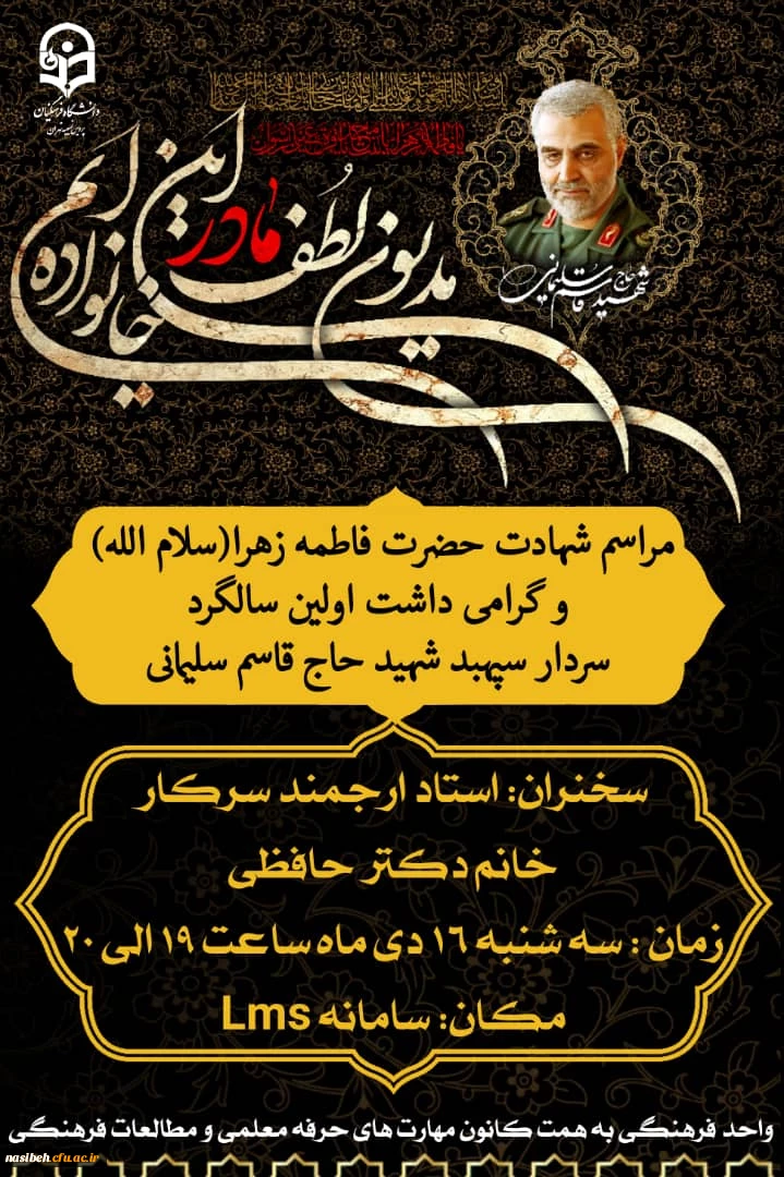 امتیاز دهید : برگزاری مراسم سالگرد شهادت حضرت زهرا (س) و اولین سالگرد شهادت سردارسپهبدحاج قاسم سلیمانی 2 چهارشنبه 17 دی 1399 ساعت 15:39