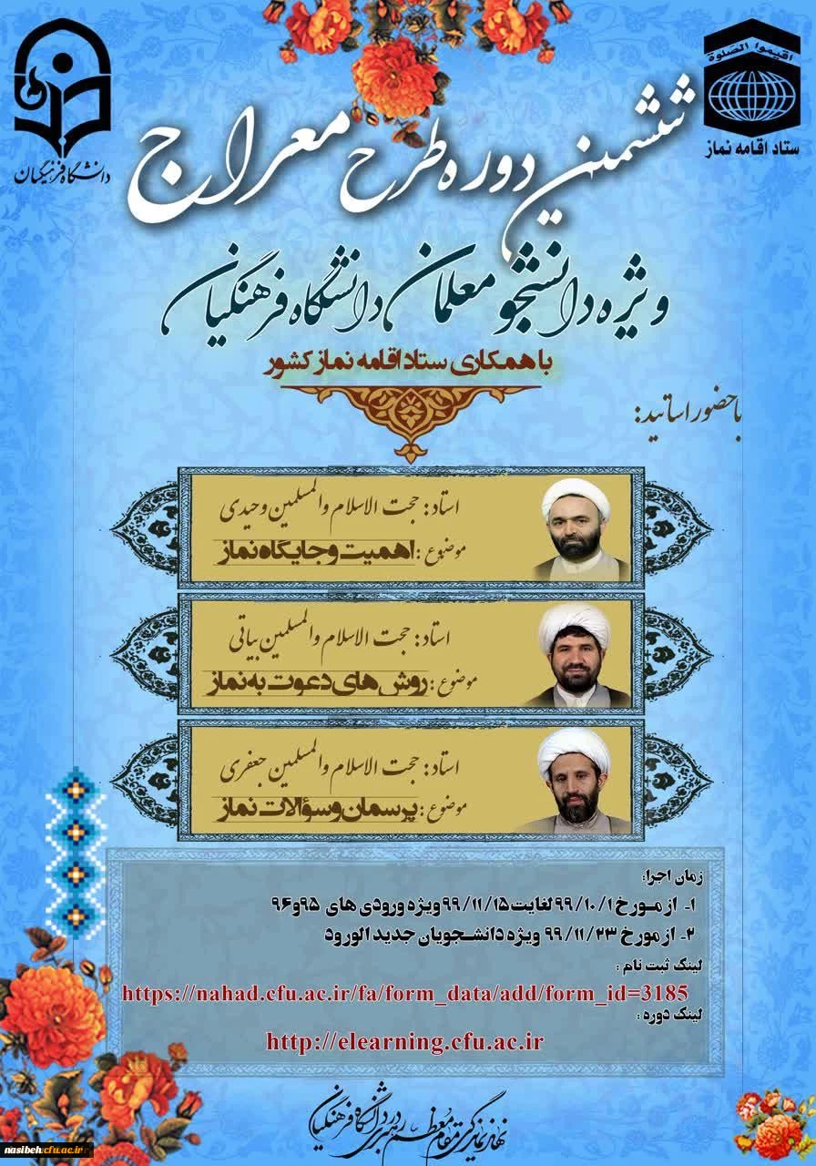 امتیاز دهید : ششمین دوره آموزشی ، تربیتی" طرح معراج "ویژه دانشجومعلمان ورودی سال های 1399و1396و1395 2 یکشنبه 21 دی 1399 ساعت 19:42