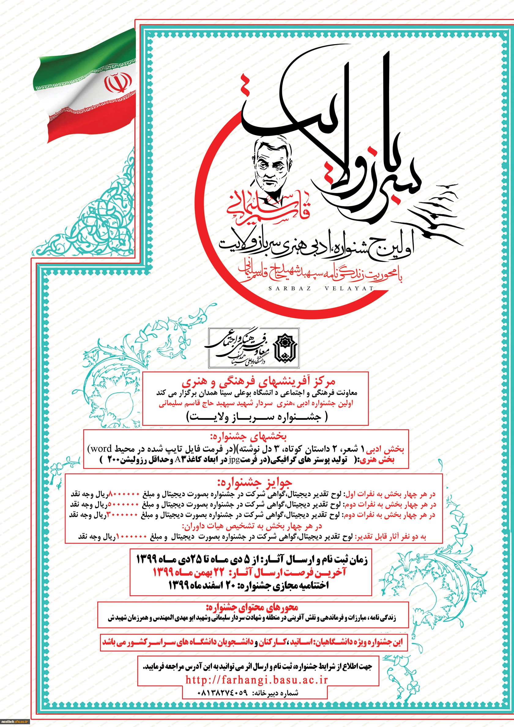 امتیاز دهید : اولین جشنواره ادبی هنری سرباز ولایت با محوریت زندگینامه سردار سپهبد شهید حاج قاسم سلیمانی 2 سهشنبه 23 دی 1399 ساعت 19:33