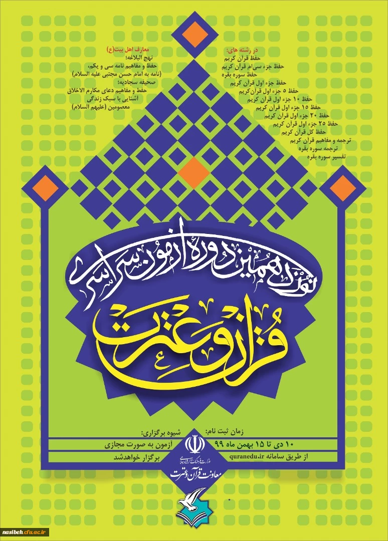 امتیاز دهید : آزمون سراسری قرآن و عترت ویژه اساتید ارجمند، کارکنان و دانشجومعلمان 2 چهارشنبه 15 بهمن 1399 ساعت 21:30