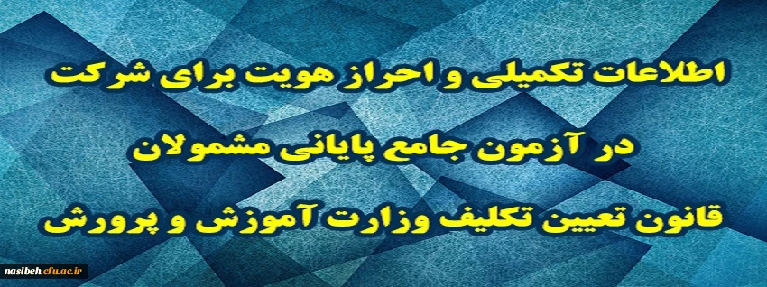 اطلاعات تکمیلی و احراز هویت برای شرکت در آزمون جامع پایانی مشمولان قانون تعیین تکلیف وزارت آموزش و پرورش 2