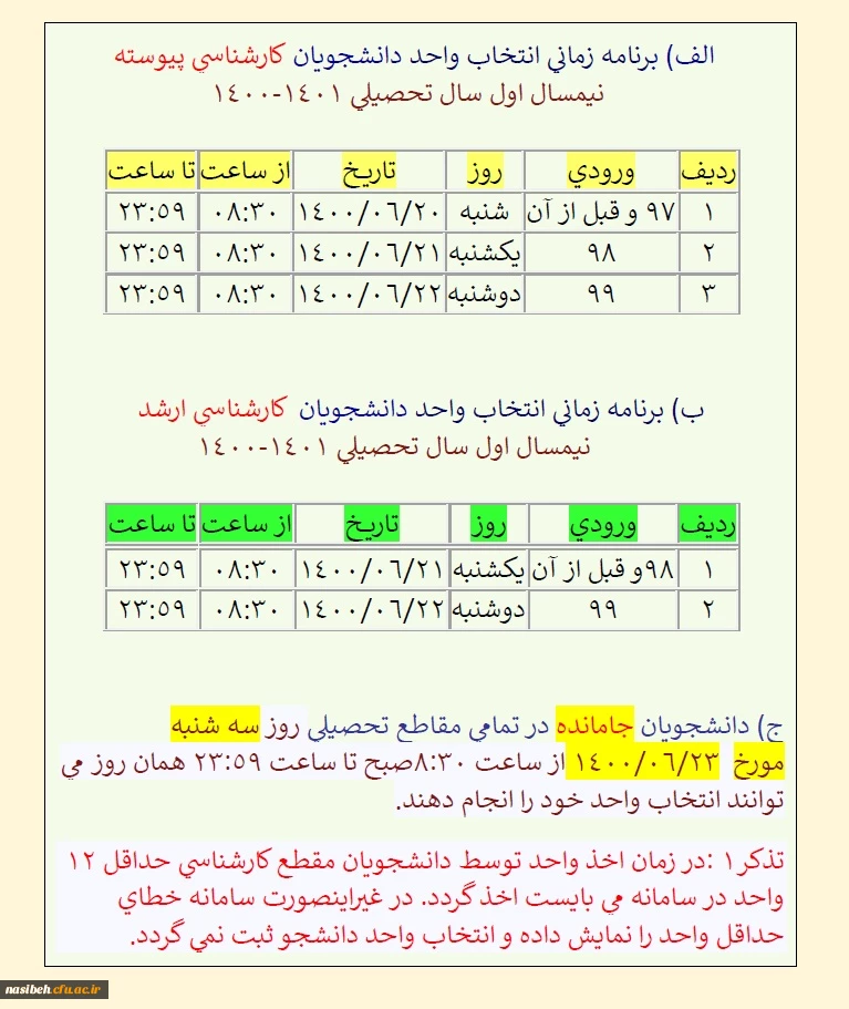 امتیاز دهید : برنامه زمانی انتخاب واحد دانشجویان کارشناسی پیوسته، ارشد و جامانده ها 2 جمعه 19 شهریور 1400 ساعت 12:12