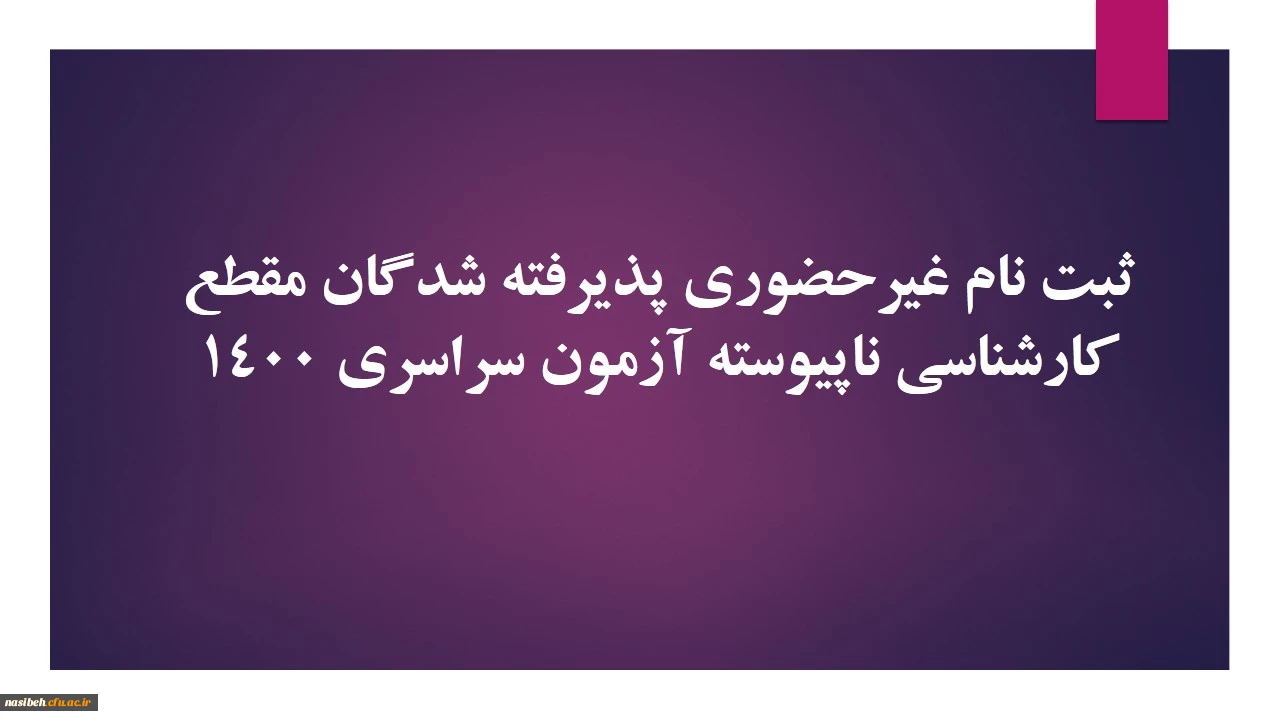 امتیاز دهید : ثبت نام غیرحضوری پذیرفته شدگان مقطع کارشناسی ناپیوسته آزمون سراسری 1400 2 سهشنبه 6 مهر 1400 ساعت 12:59