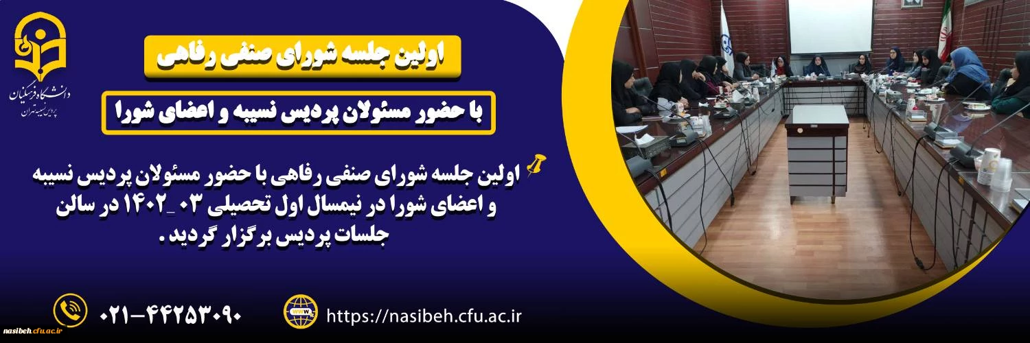 امتیاز دهید : اولین جلسه شورای صنفی رفاهی پردیس نسیبه در نیمسال اول تحصیلی 1403 ـ1402 3 یکشنبه 16 مهر 1402 ساعت 10:23