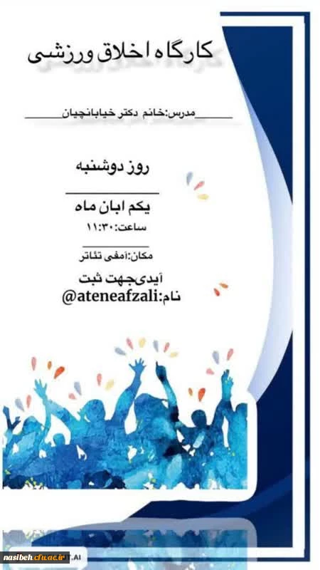 امتیاز دهید : برگزاری کارگاه " اخلاق ورزشی " به مناسبت هفته ی تربیت بدنی در دانشگاه نسیبه 2 یکشنبه 30 مهر 1402 ساعت 14:30
