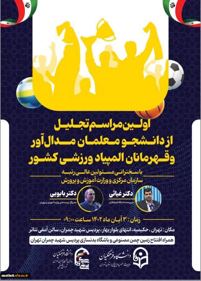 امتیاز دهید : اولین مراسم تجلیل از دانشجو معلمان مدال آور و قهرمانان المپیاد ورزشی کشور 2 سهشنبه 2 آبان 1402 ساعت 9:32