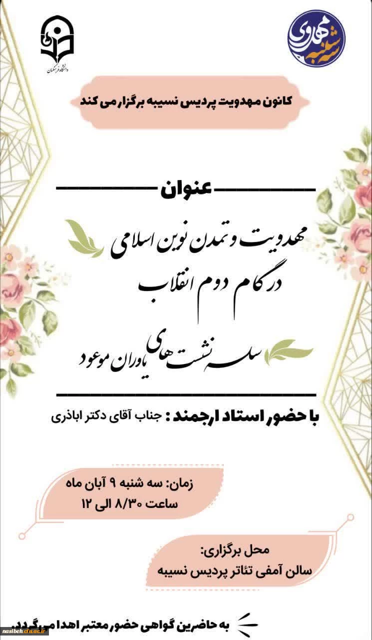 امتیاز دهید : سلسله نشست های یاوران موعود مهدویت و تمدن نوین اسلامی در گام دوم انقلاب 2 دوشنبه 8 آبان 1402 ساعت 9:32