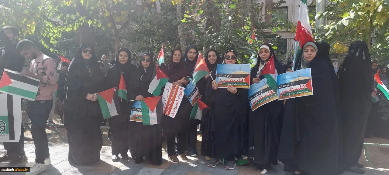 حضور مسئولین و استادان دانشگاه فرهنگیان پردیس نسیبه در تجمع اعتراضی علیه جنایات رژیم صهیونستی مقابل دفتر سازمان ملل متحد 4