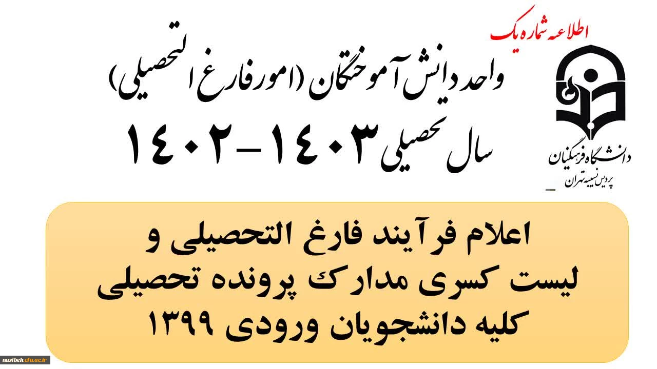اطلاعیه شماره یک (1) فارغ التحصیلی 2