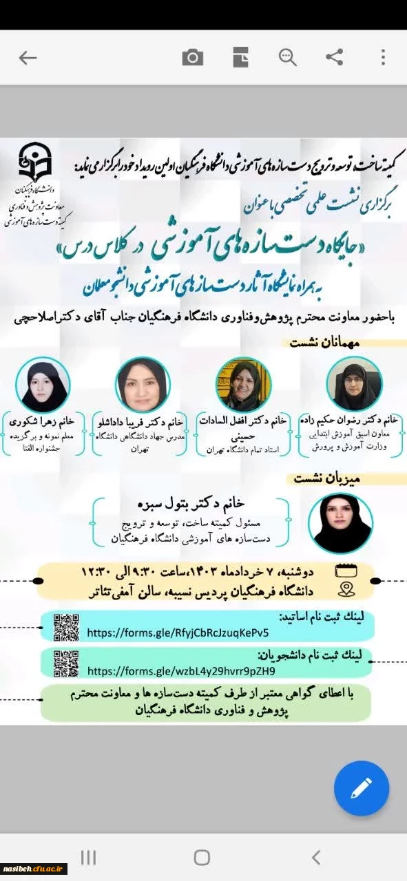 امتیاز دهید : برگزاری نشست علمی تخصصی "جایگاه دست سازه های آموزشی در کلاس درس 2 یکشنبه 6 خرداد 1403 ساعت 16:18